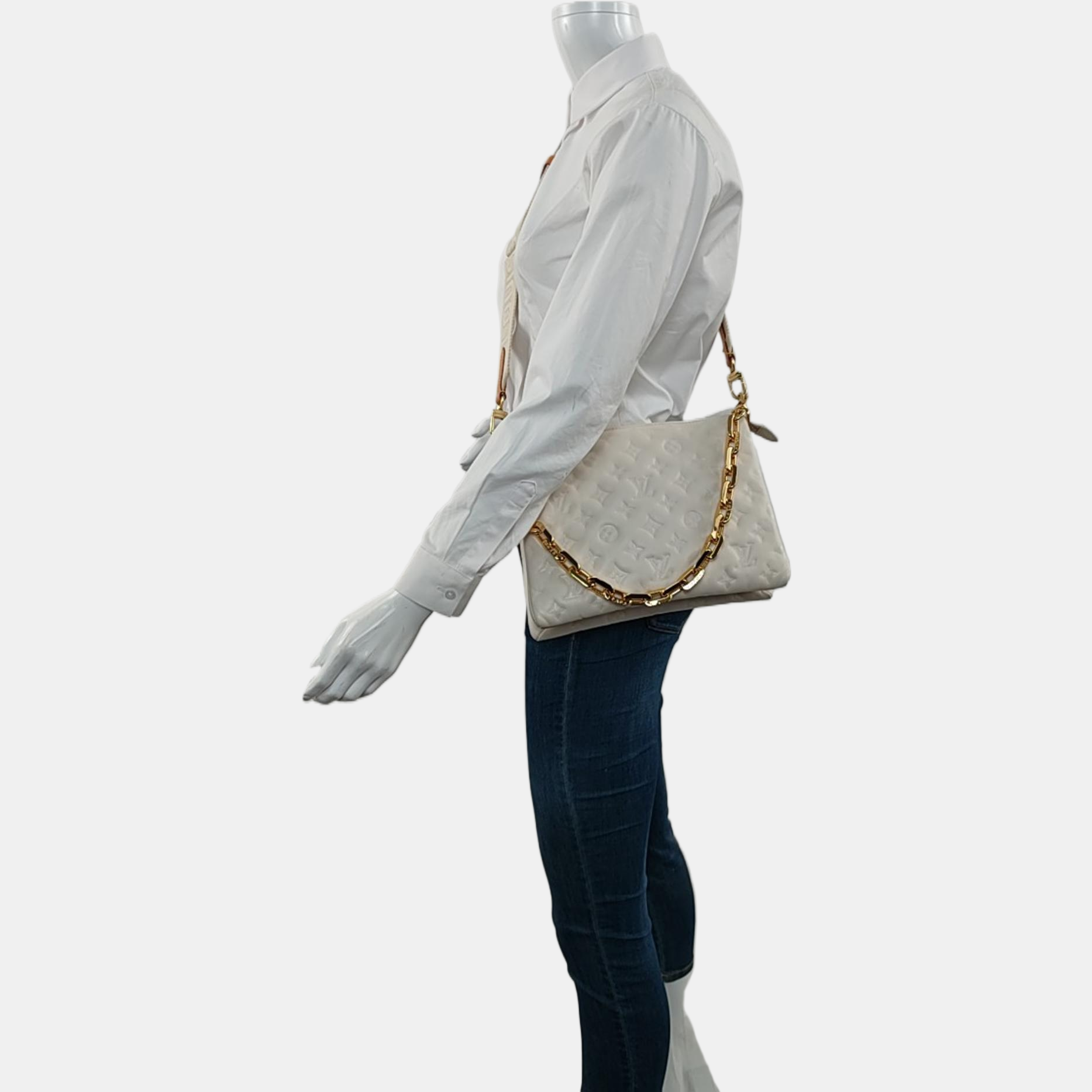 LOUIS VUITTON COUSSIN Small White Lamb Skin Embossed Crossbody Shoulder Bag Gold Hardware 2 Removable Straps-(SKU)-969252517