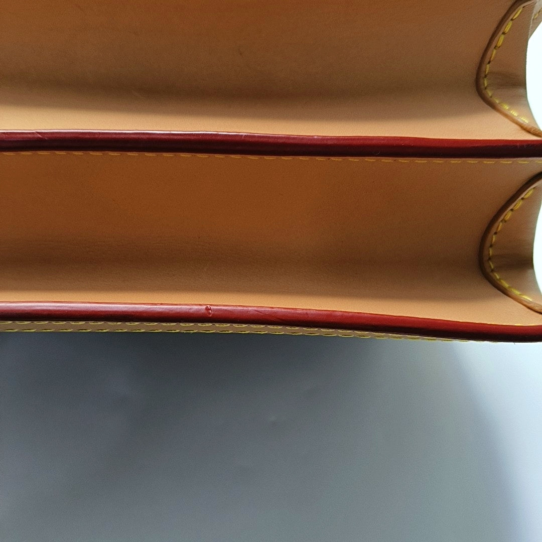 Detailed description: Strap、Interior、Inside of the flip cover、Outside of the flip cover、Slight stains on the bottom side,Strap、Hardware buckle with moderate scratches、Four corners、Slight stains on the hardware,Slight scratches on the outside of the flip cover