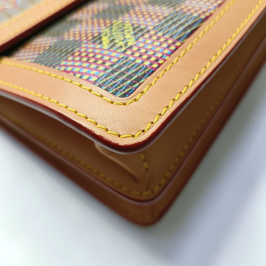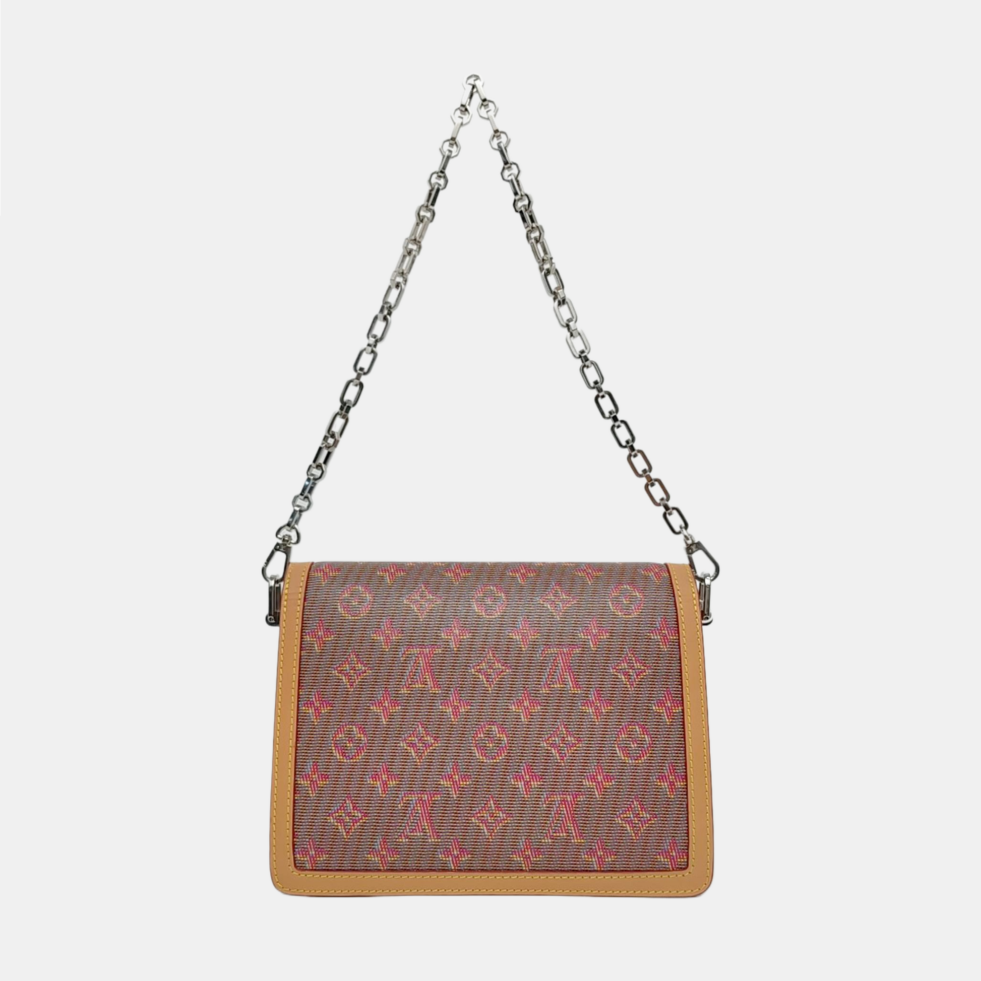LOUIS VUITTON DAUPHINE Medium Red Calfskin Monogram Checkerboard Dauphine Single Shoulder Bag Sling Bag Silver Hardware 2 Removable Straps-(SKU)-967790529