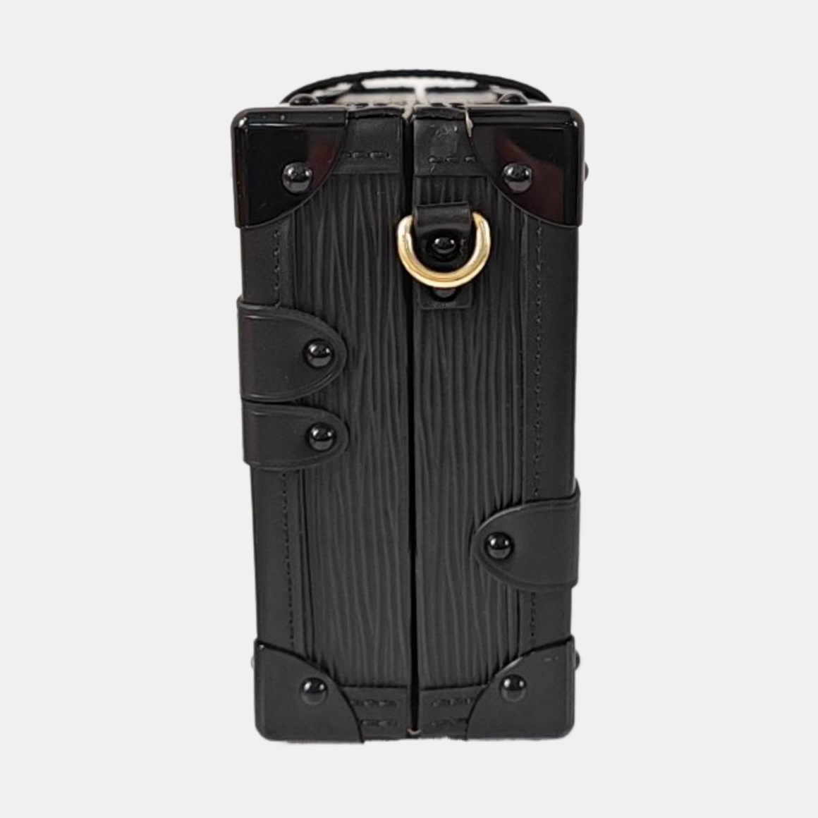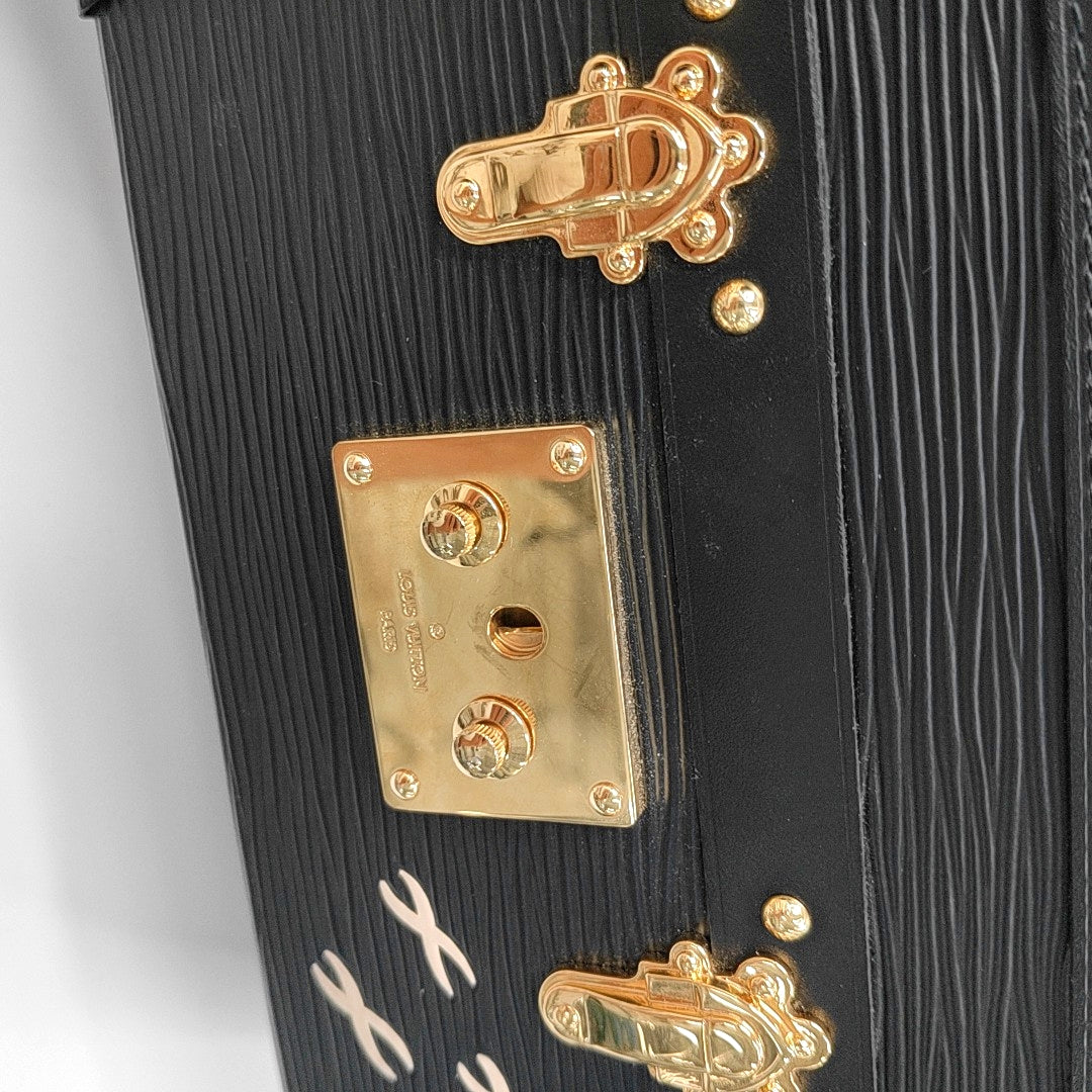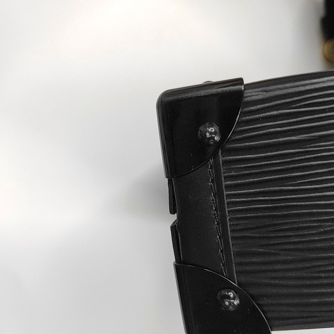 LOUIS VUITTON PETITE MALLE Black EPI Calfskin Water Ripple Pattern Crossbody Shoulder Bag Gold Hardware Removable Shoulder Strap-(SKU)-968078089