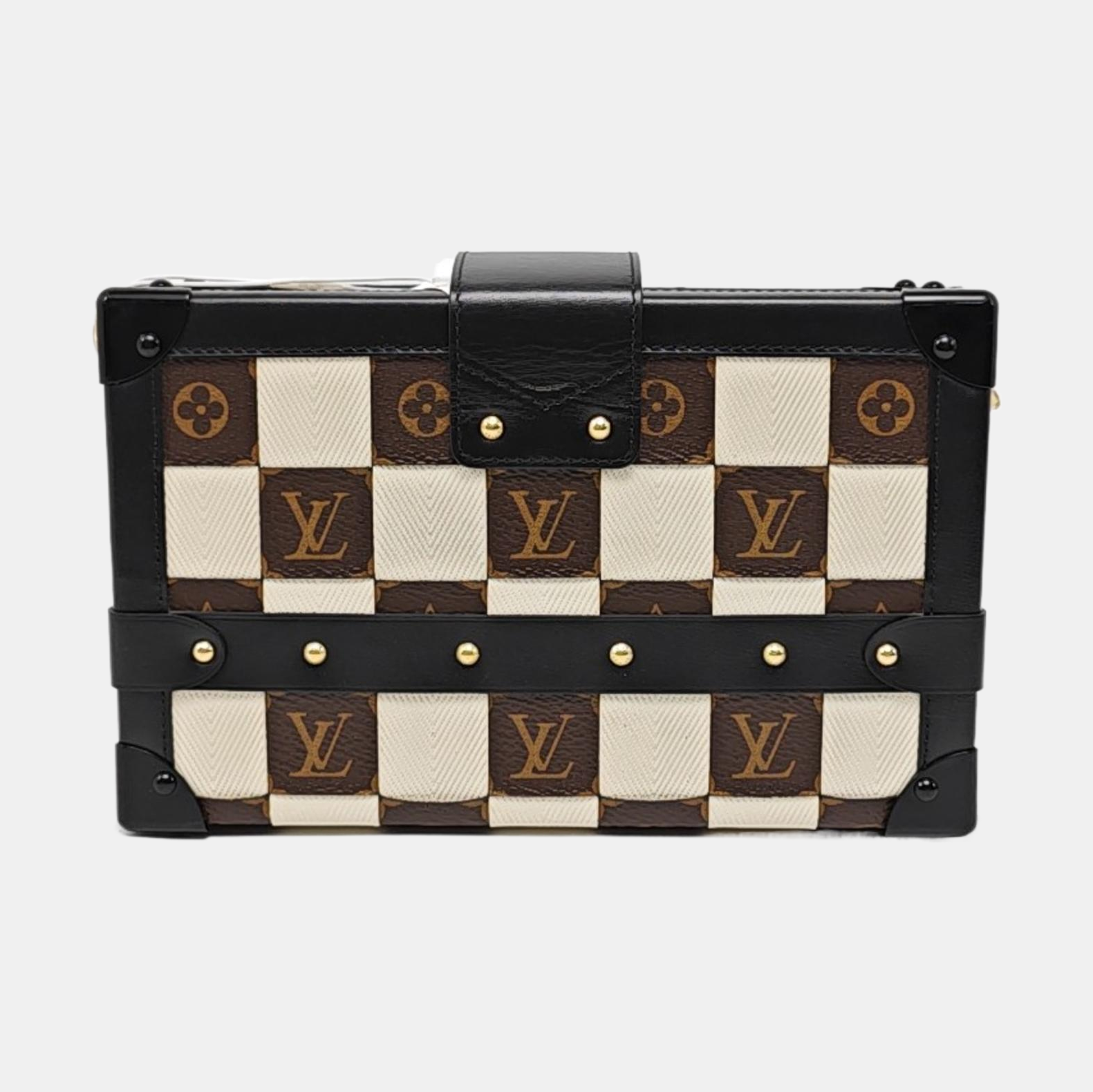 LOUIS VUITTON PETITE MALLE Brown Coated Canvas Monogram Crossbody Shoulder Bag Golden Hardware Removable Strap-(SKU)-969285537