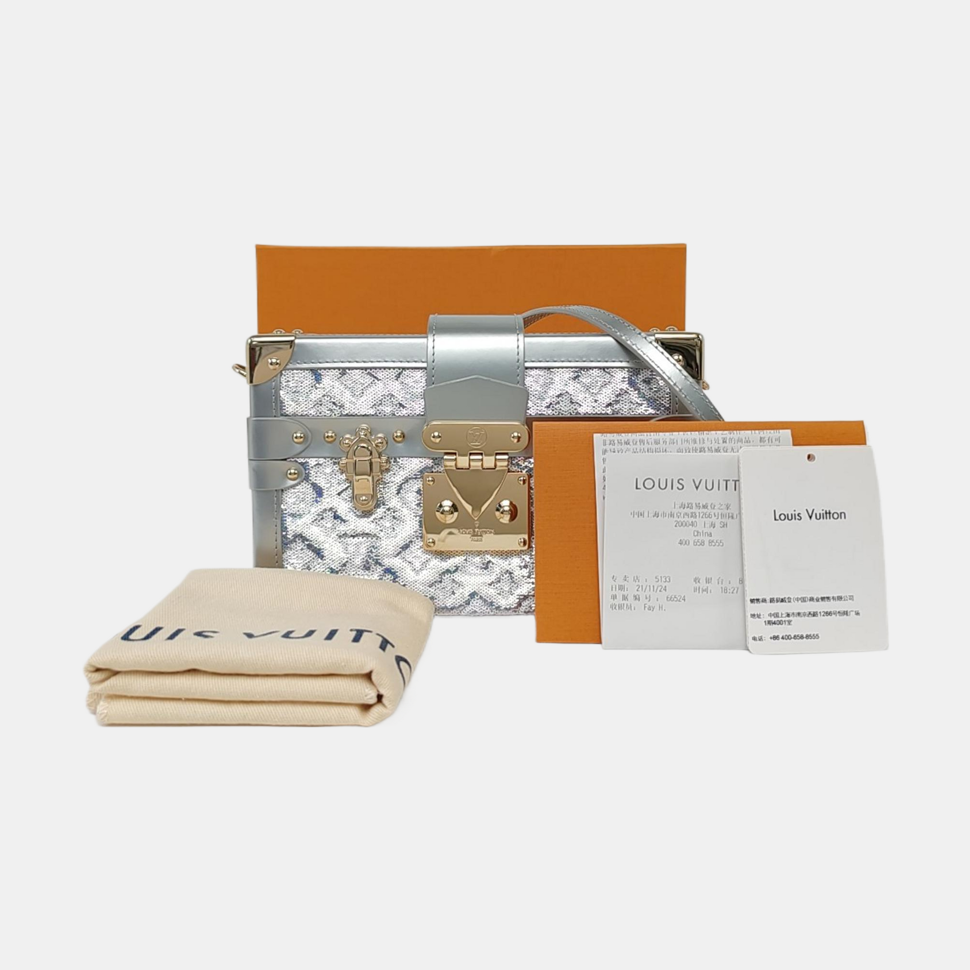 LOUIS VUITTON PETITE MALLE Silver Satin Shoulder Bag Crossbody Golden Hardware Removable Shoulder Strap Complete Accessories-(SKU)-961332912