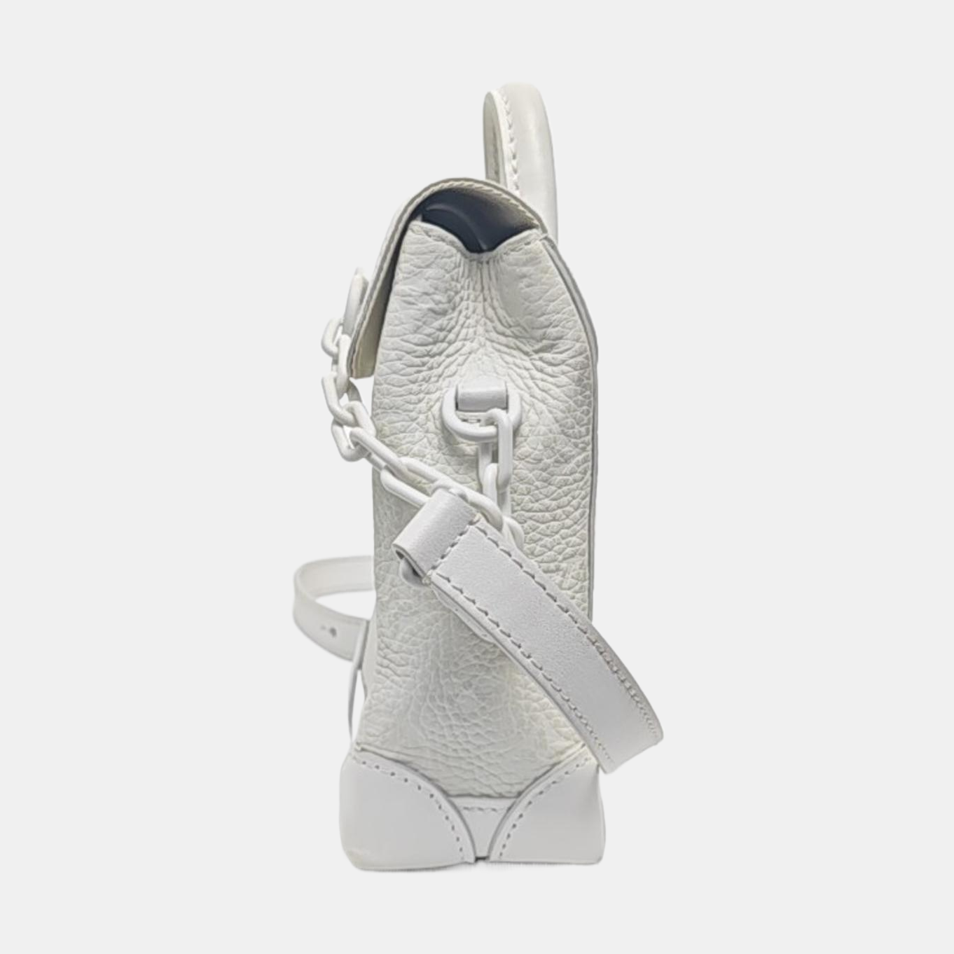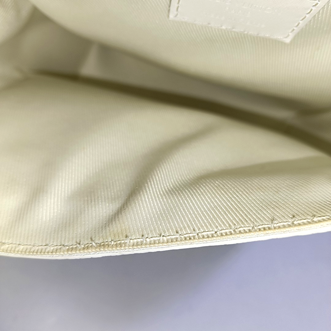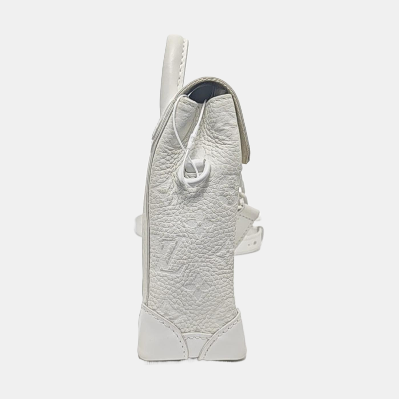 LOUIS VUITTON STEAMER Extra Small Size White Calfskin Monogram Embossed Crossbody Shoulder Bag Black Hardware Removable Shoulder Strap-(SKU)-961736730