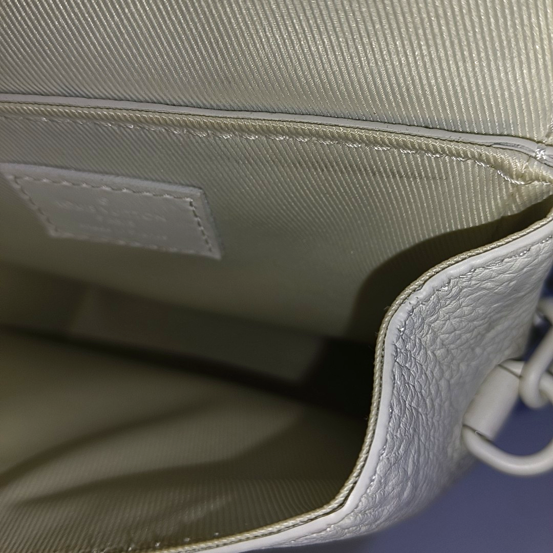 Detailed description: Body of the bag、Strap、Interior、Edge wrapping around the opening、Outside of the flip cover、Handheld、Slight stains on the four corners,Slight cracking at the opening,Four corners、Slight stains on the hardware,Flip cover、Moderate stains on the inside of the flip cover