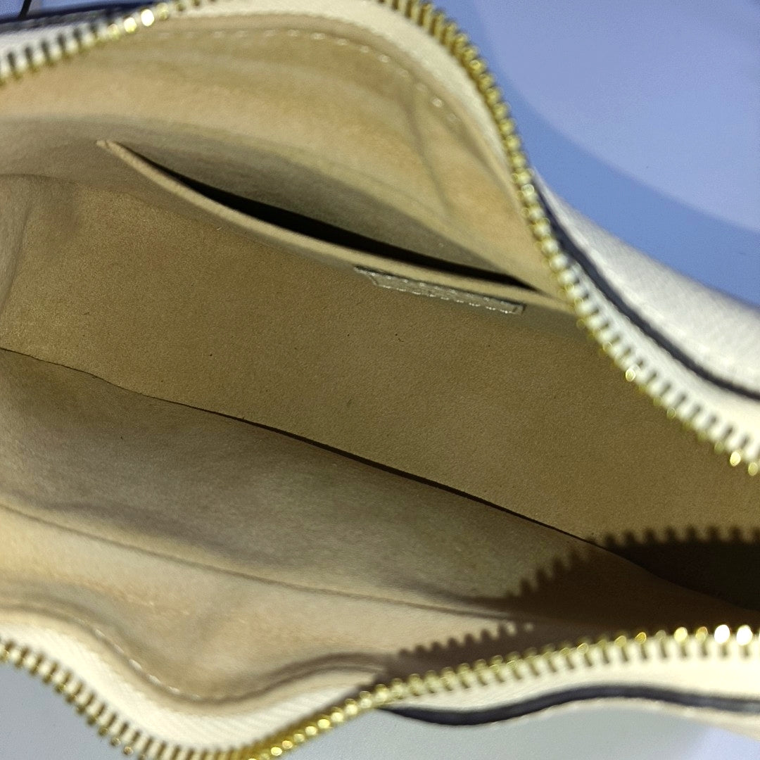 Detailed description: Interior、Slight stains on the four corners,Slight oxidation discoloration of the zipper,Slight stains on the hardware,Zipper、Moderate stains on the hardware