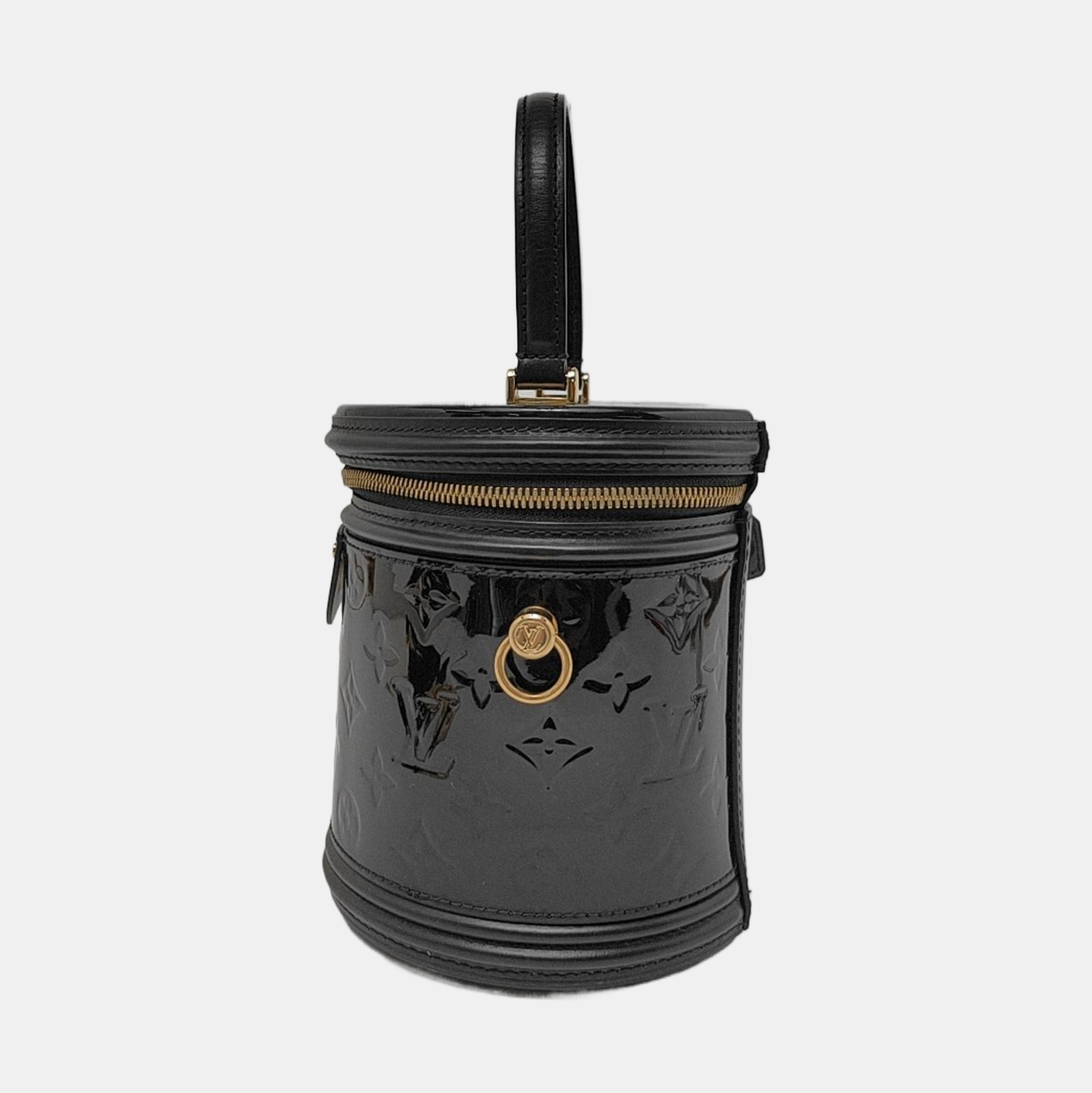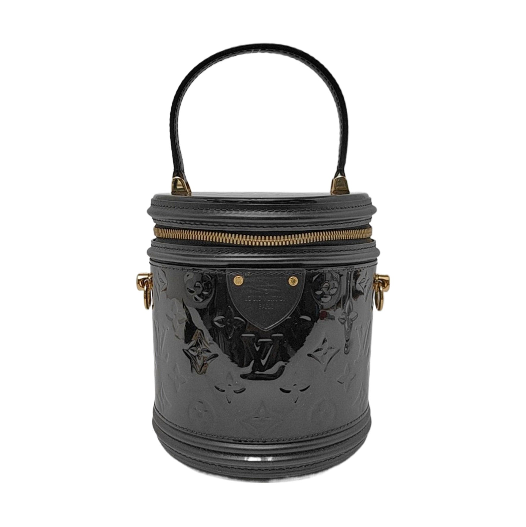 LOUIS VUITTON CANNES Black Patent Leather Embossed Money Bucket Crossbody Shoulder Bag Tote Bag Gold Hardware Removable Strap-(SKU)-952976210