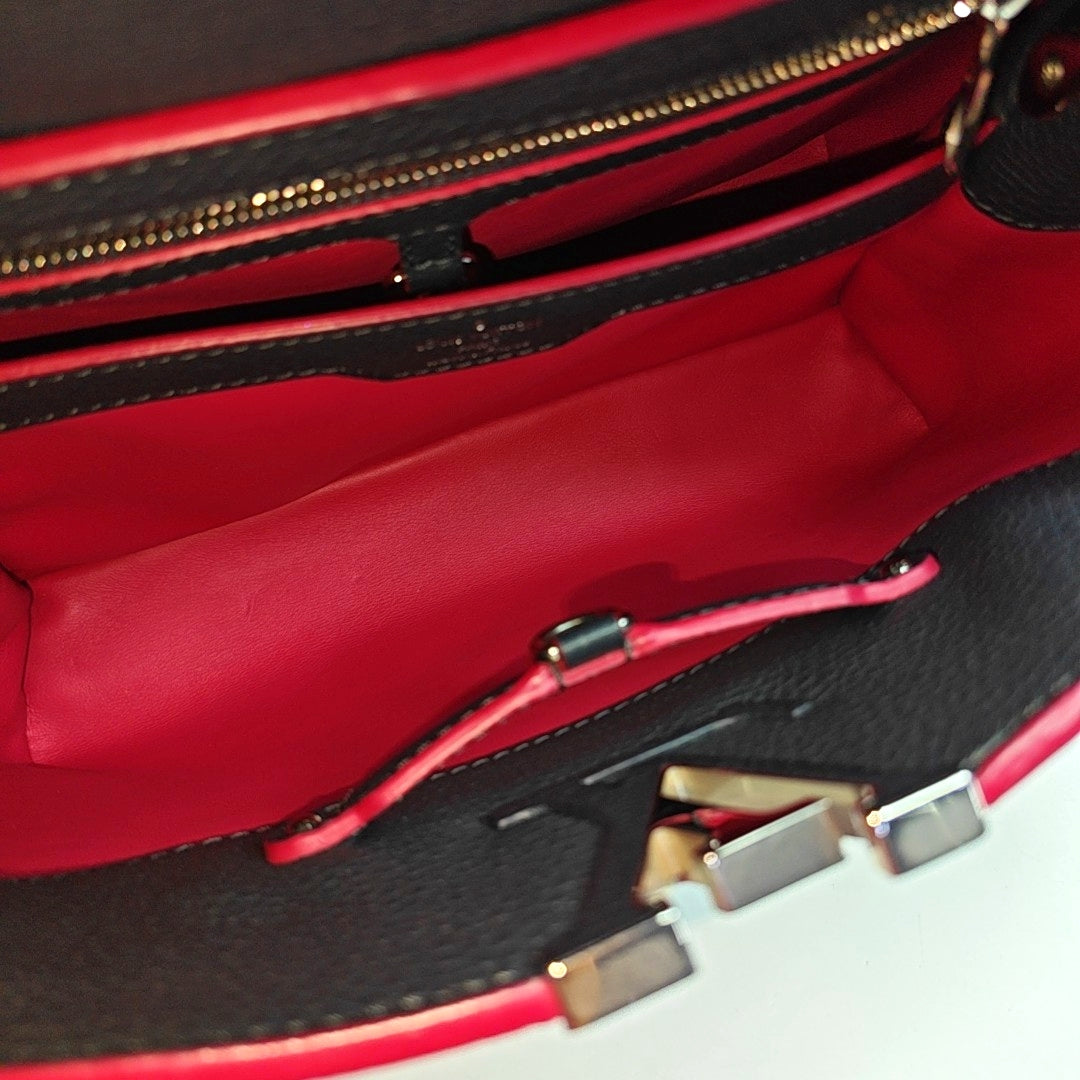 LOUIS VUITTON CAPUCINES Medium Size Black Calfskin Single Shoulder Bag Crossbody Handbag Silver Hardware Removable Shoulder Strap-(SKU)-968015408