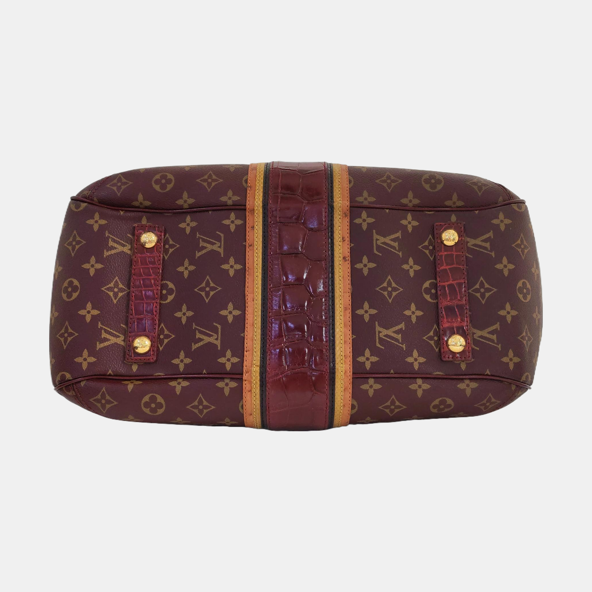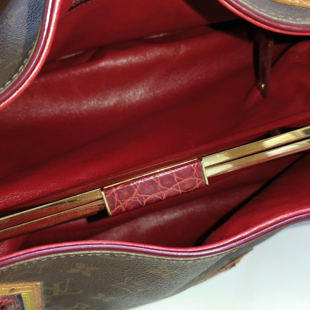 LOUIS VUITTON GRIET Brown Coated Canvas Monogram Crocodile Embossed Handbag with Gold Hardware-(SKU)-967372524