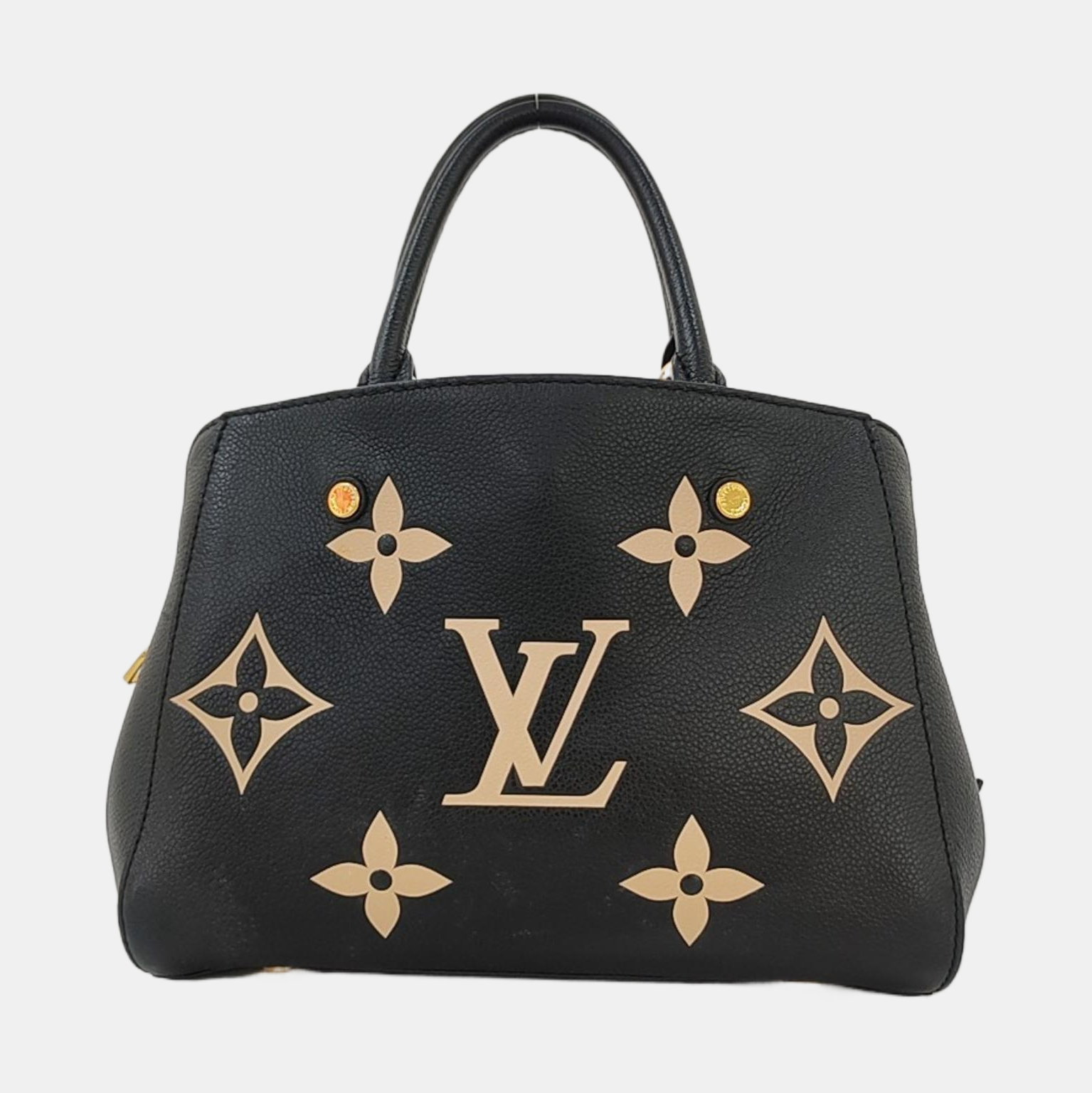 LOUIS VUITTON MONTAIGNE BB Black Leather Grained Montaigne Bag Shoulder Bag Crossbody Handbag with Gold Hardware and Removable Strap-(SKU)-969635032