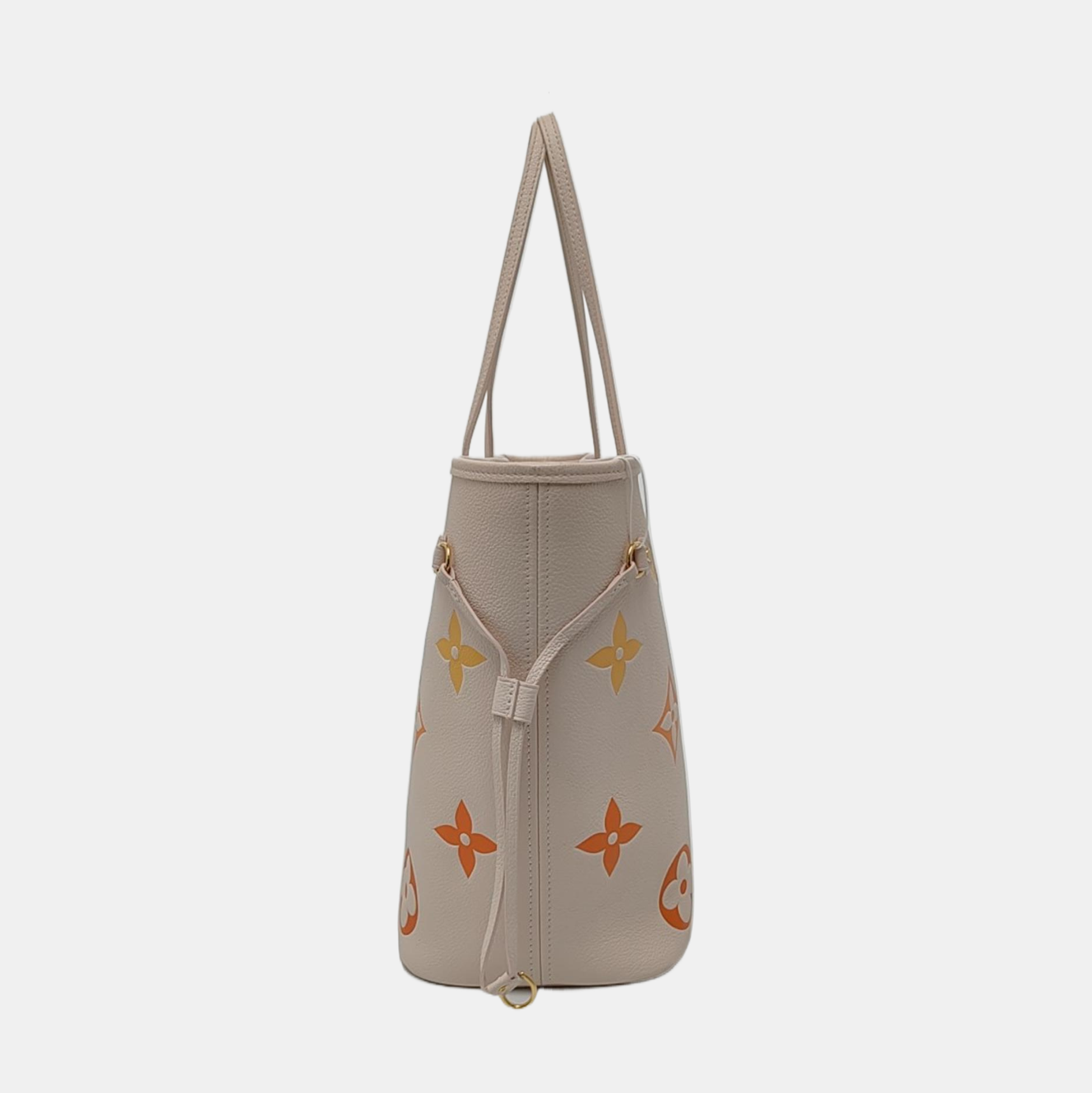 LOUIS VUITTON NEVERFULL Medium Beige Leather Monogram Tote Shoulder Bag with Shoulder Strap, Gold Hardware-(SKU)-968750223