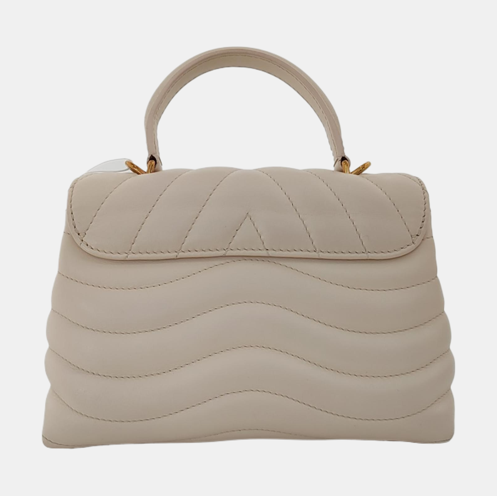 LOUIS VUITTON NEW WAVE Beige Leather Quilted Shoulder Bag Tote Bag with Detachable Strap-(SKU)-968960265