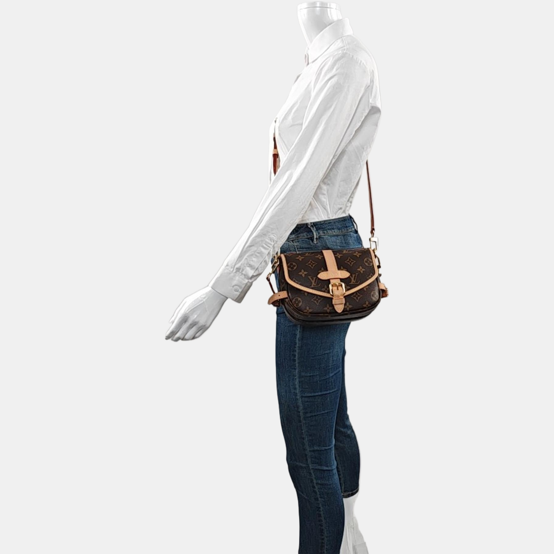 LOUIS VUITTON SAUMUR BB Brown Coated Canvas Monogram Crossbody Shoulder Bag Tote Bag Convertible Strap with 2 Removable Straps-(SKU)-971159593