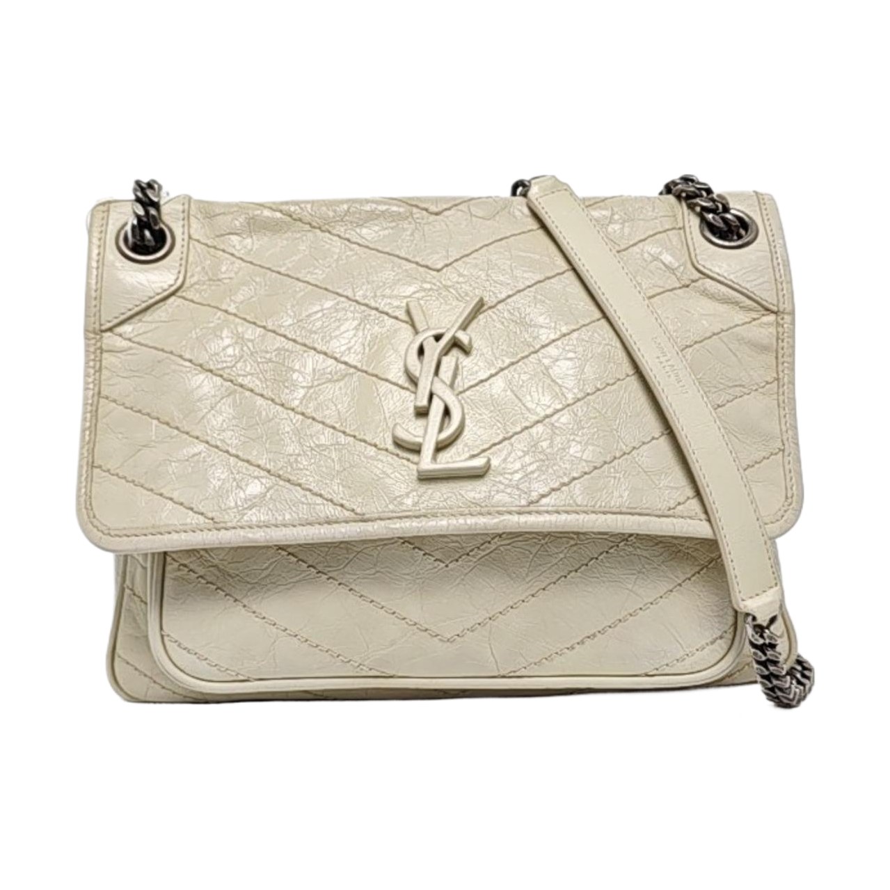 YSL NIKI Medium Beige Calfskin Plaid Quilted Shoulder Bag Crossbody Bag Palladium Hardware-(SKU)-963808720