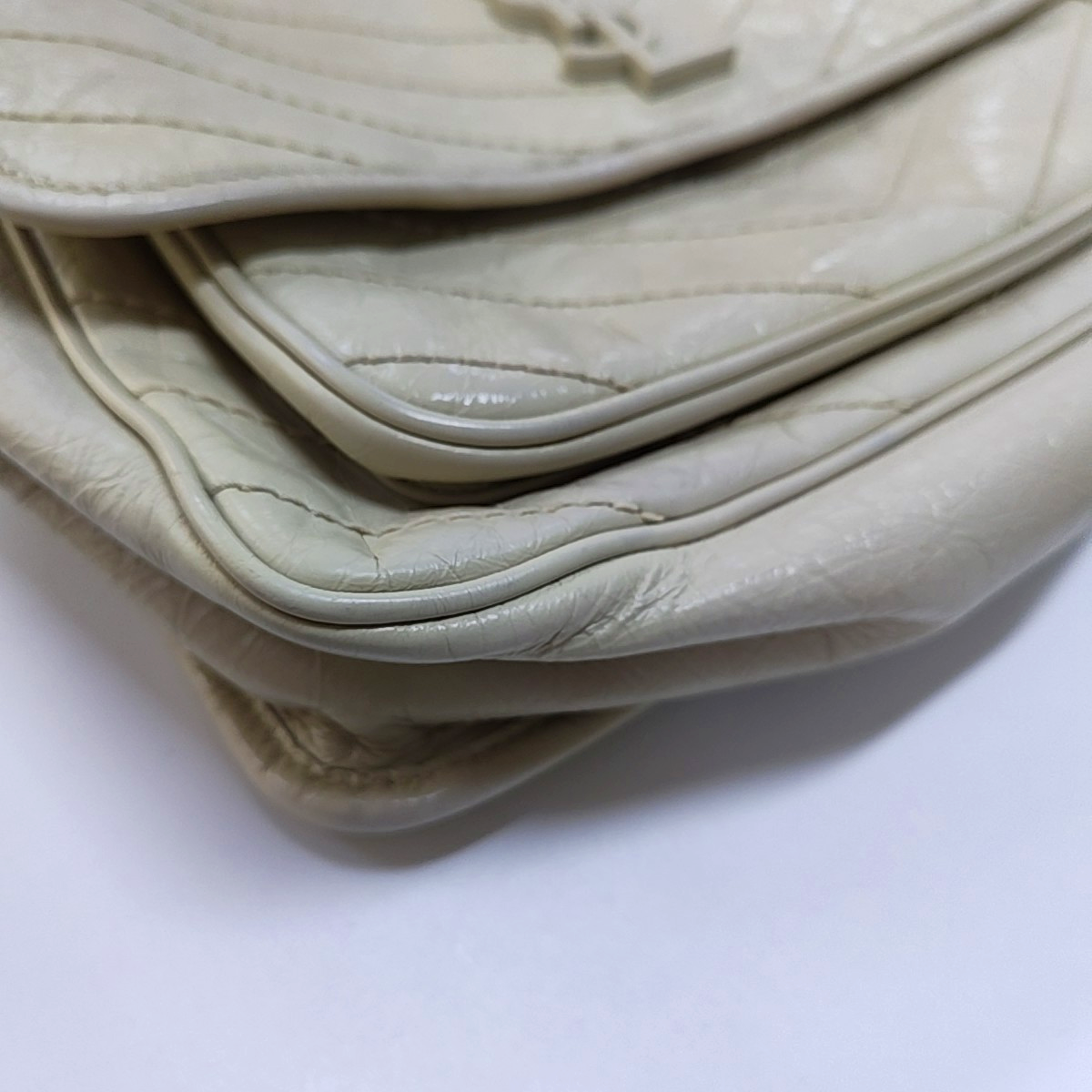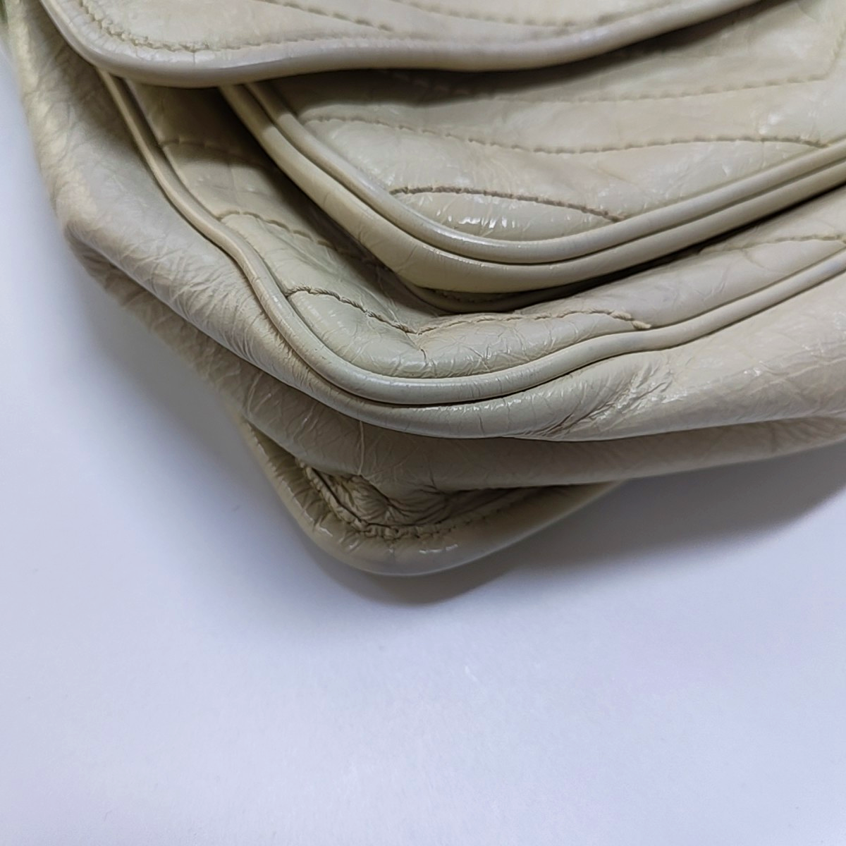 Detailed description: Hardware buckle with moderate scratches、Slight wear on the four corners,Body of the bag、Strap、Inside of the flip cover、Slight creases on the side panel,Slight cracking of the flip cover;Body of the bag、Strap、Four corners、Flap Has Undergone Color Restoration
