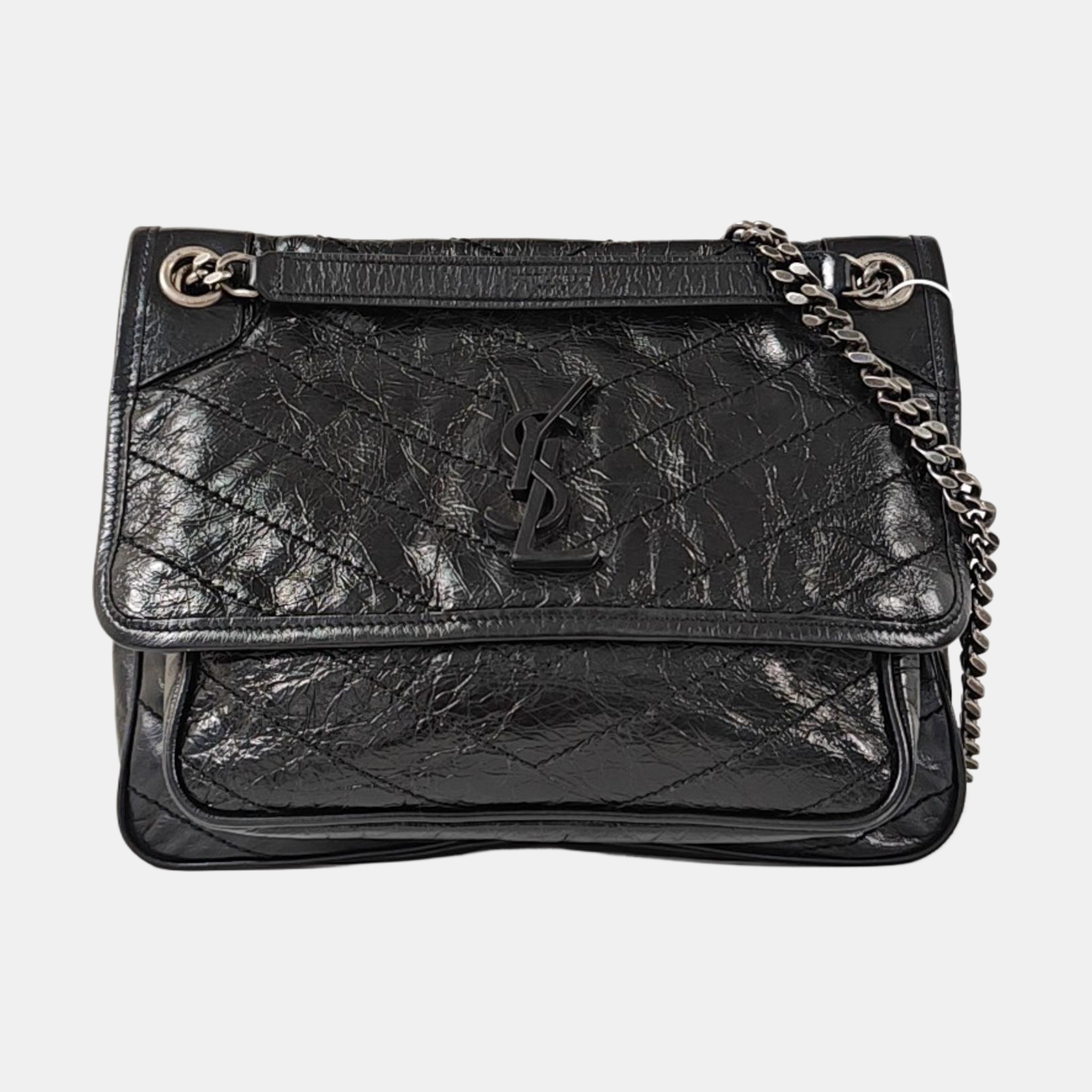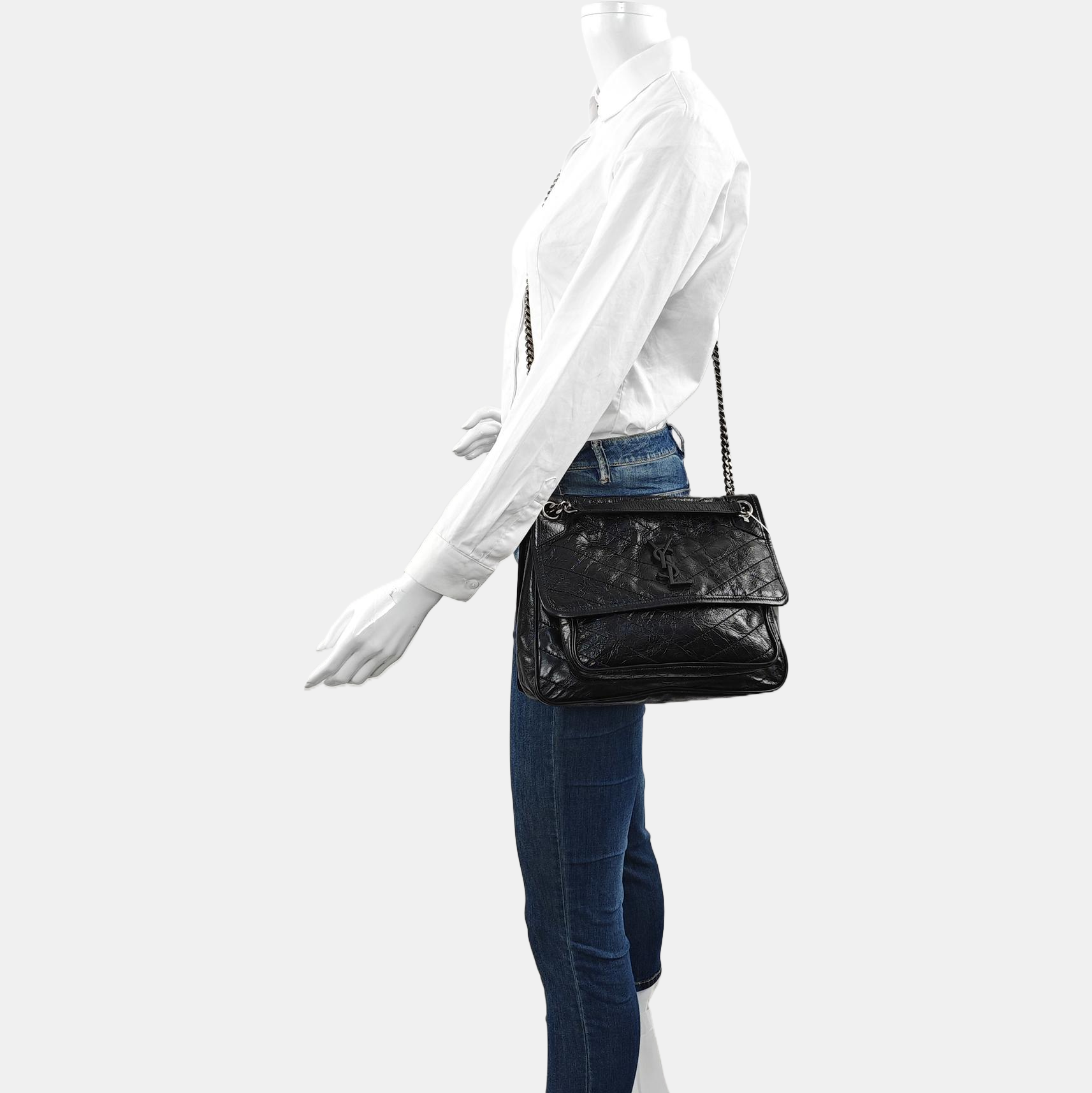 YSL NIKI Medium Black Calfskin Quilted V-Stripe Shoulder Bag and Crossbody with Black Rhodium-Plated Hardware-(SKU)-971324466