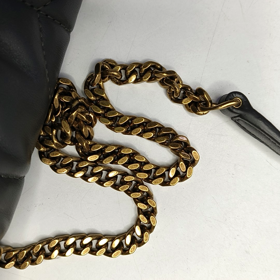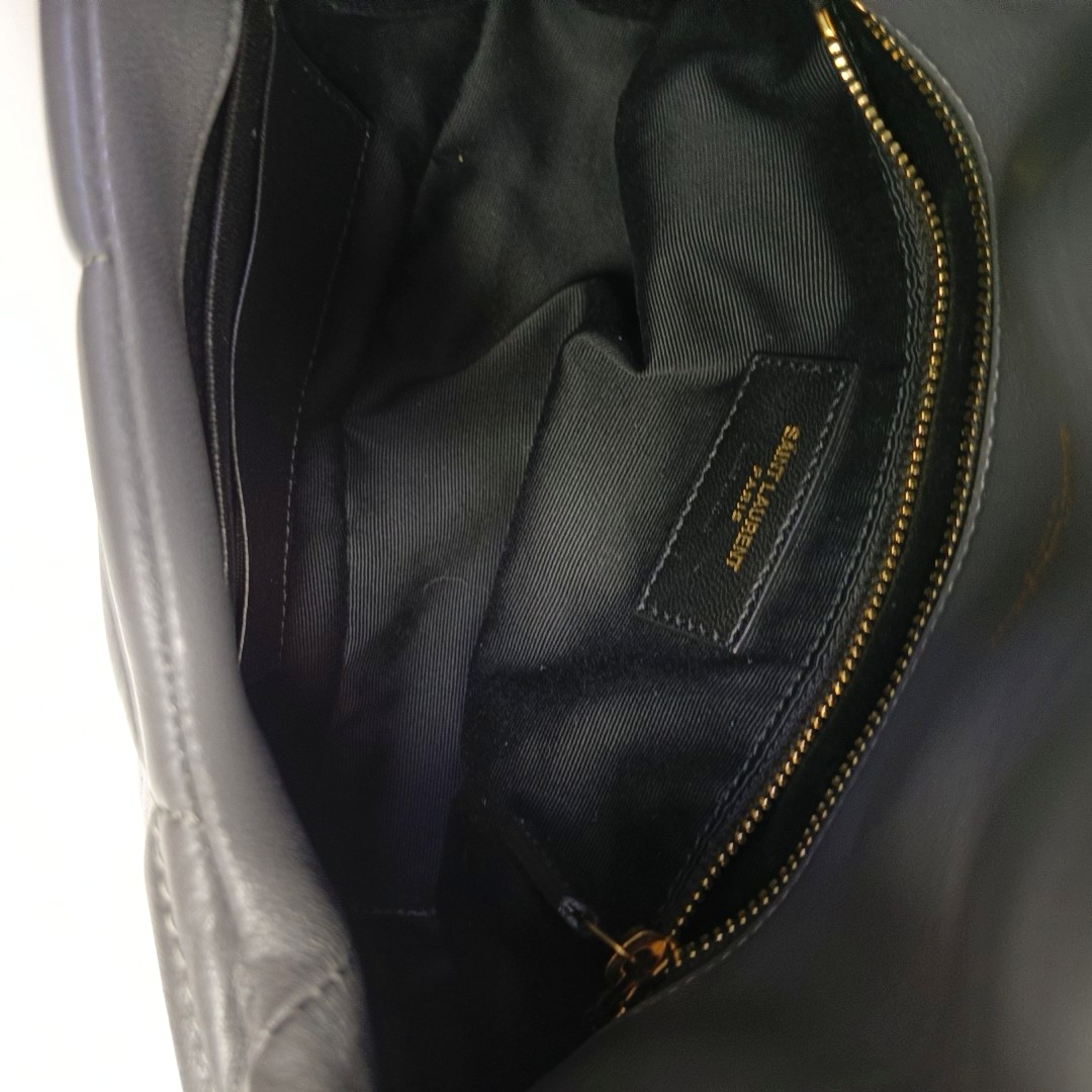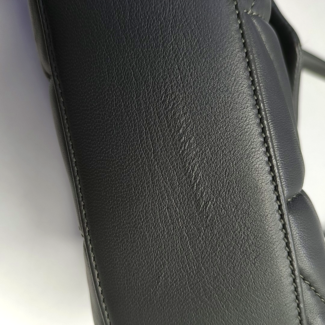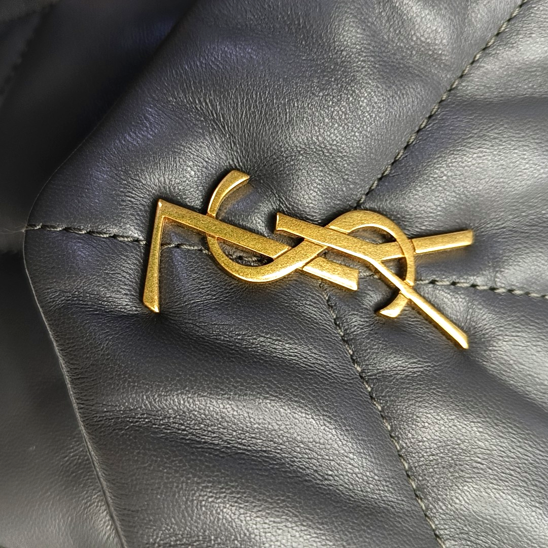 YSL PUFFER Mini Dark Gray Lamb Leather Quilted V Envelope Bag Single Shoulder Bag and Crossbody with Gold Hardware-(SKU)-955986894